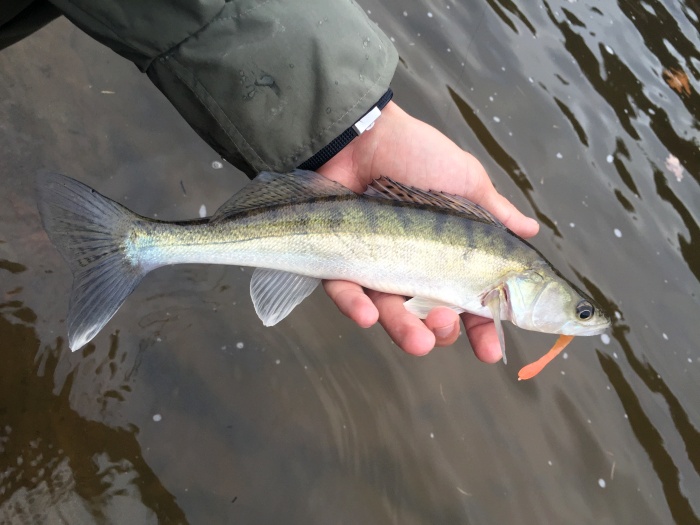 Po předchozím velmi studeném, větrném dni, to vypadá, že se počasí na dnešek uklidní a vykoukne i sluníčko. Bohužel rybám se změny počasí a průtoku vody příliš nelíbí a moc s námi nespolupracují. Měníme barvy, velikosti i způsob vedení, ale není nám to nic moc platné. Odměnou jen nám jen pár okouních dorostenců.