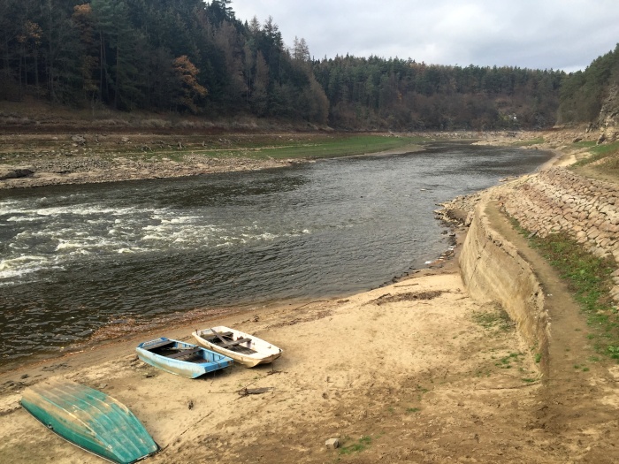 V posledních dnech jsem své kroky směřoval na upuštěnou Orlickou přehradu. Nevyrážím sám, ale se svým rybářským kolegou a autorem několika článků zde na blogu, Jardou. Lákaly nás jak přírodní scenerie, které zůstaly po dlouhou dobu ukryty pod vodní hladinou, tak vidina pěkných okounů, candátů a bolenů krmících se na svých podzimních stanovištích. Hladina přehrady je dnes vinou sucha a upouštění zhruba o 12,5 metrů níže než jaký dosud býval její obvyklý stav. Člověk se tak může pohybovat po místech, která desítky let nikdo nespatřil. Můžete vidět dávno zatopené mlýny, základy domů, bunkry, jezy či elektrárny.