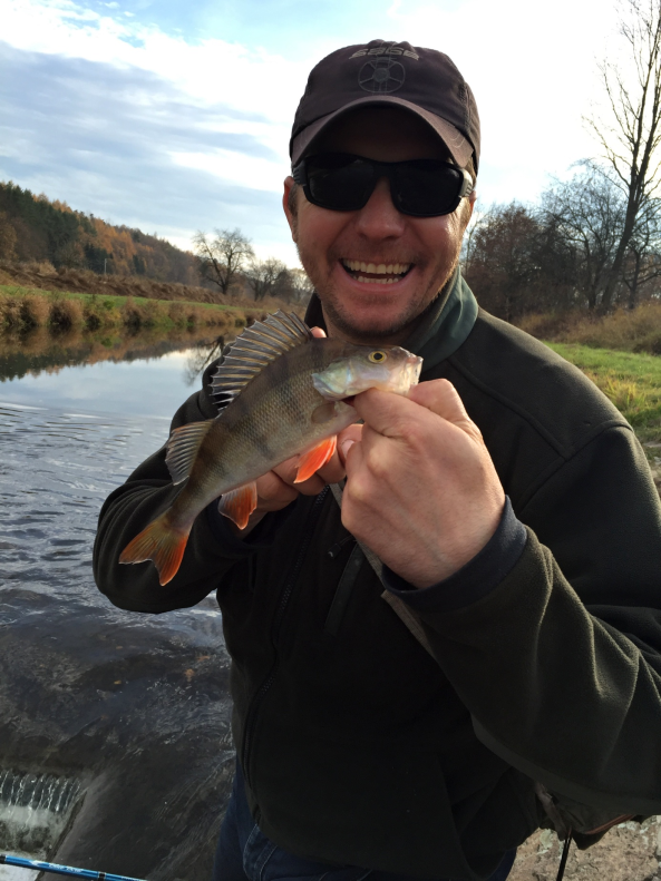 Chtěl jsem to už zabalit, ale Jiří mě ještě přesvědčil podívat se k jedné staré tůni, kam moc rybářů nezavítá. Tady jsem se konečně dočkal a po krásném záběru jsem zdolal 30 cm okouna. Nádherný kousek na tak malou říčku. I jemu dávám svobodu. Zakončil jsem tak báječný den na rybách a těším se na ty další.